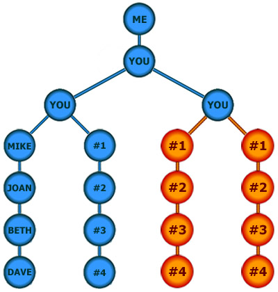 I say at least $3,000 because there are bonuses in addition to this income that you will be eligible for. You could potentially be earning over $200,000 a year by stopping here after only 4-5 weeks of building sales teams! But it DOES NOT STOP HERE. The possibilities are ENDLESS. Every time a team is complete in 2 of your own legs, you will receive a certificate of re-entry. This is the key to enormous incomes... and that can be even seven figures per year! |